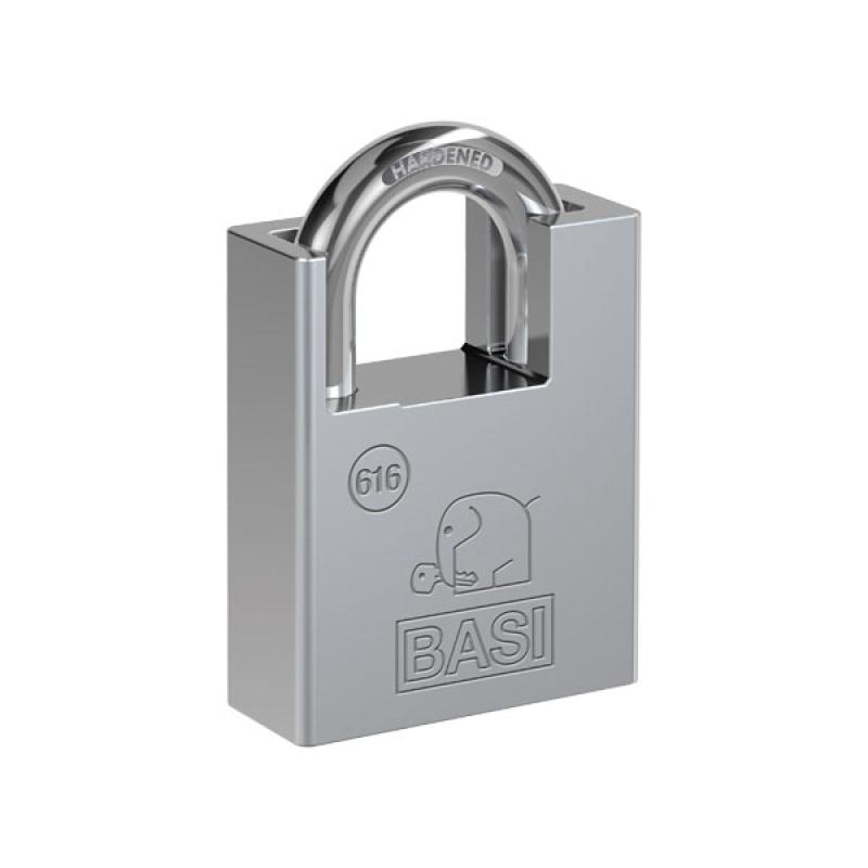 Il lucchetto VHS 616 offre una protezione massima: è dotato di un corpo in acciaio massiccio rivestito largo 40 mm. Per una sicurezza aggiuntiva, sono forniti il grillo in acciaio temprato di 6 mm di diametro e la protezione dell'asta. Inoltre, l'asta è bloccata su entrambi i lati con una chiusura a doppia sfera. Il lucchetto VHS 616 con chiusura diversa è fornito con 2 chiavi a baionetta.